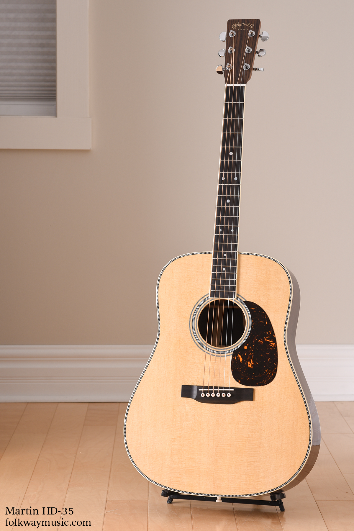 The Herringbone HD-35 is Martin’s most lightly constructed dreadnought. Featuring Golden Era forward-shifted scalloped ¼” wide bracing like that you’d find on a vintage 14 fret 00, the HD-35 offers huge bass presence and warmth, plenty of volume, and a playing experience unlike any other Martin Dreadnought.