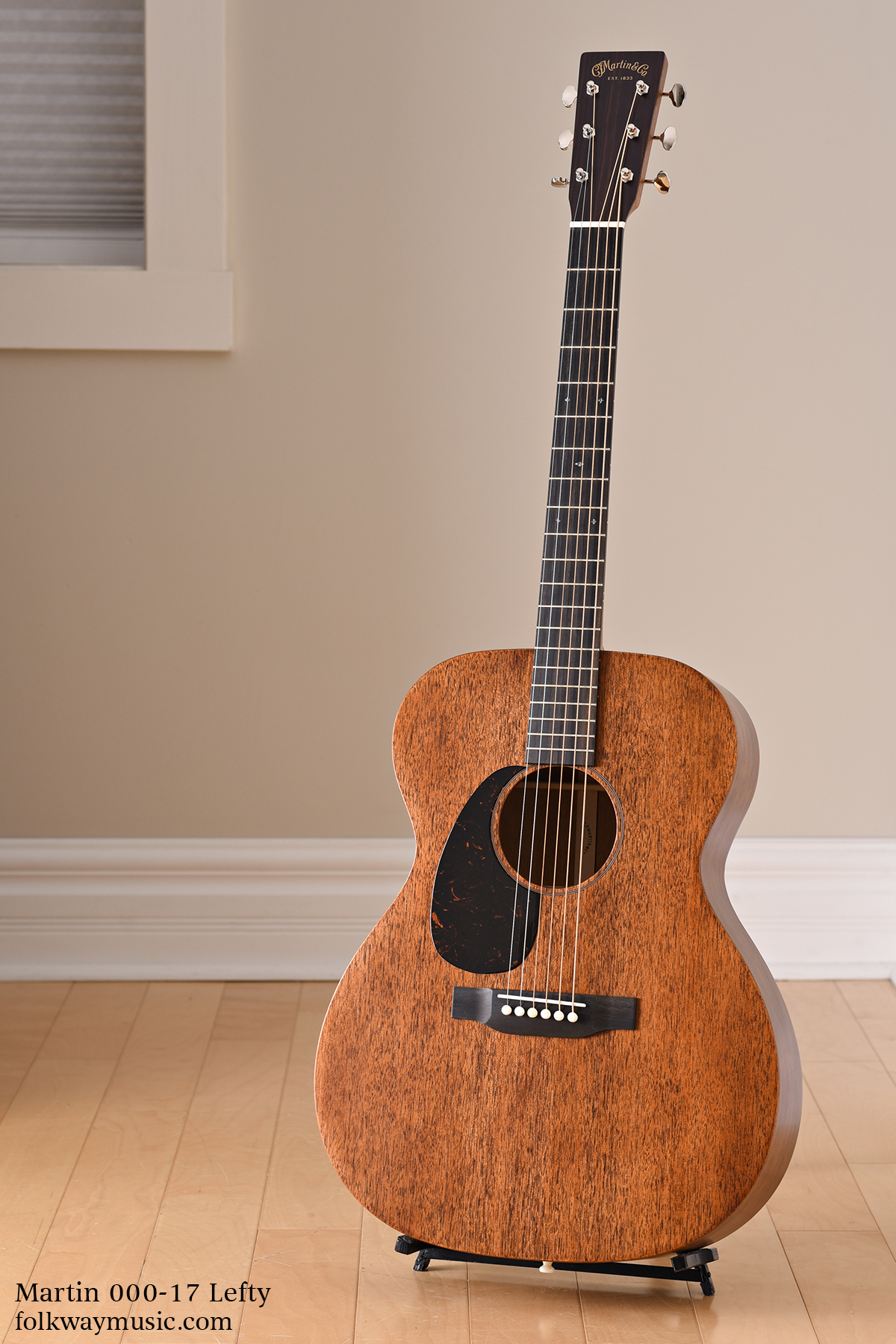 The all-mahogany construction with forward-shifted scalloped left-handed bracing offers a dry, woody and open tone with a touch of sparkle up top and beautifully supported mid-range. Flatpickers and fingerstylists alike will love what the new left-handed Martin 000-17 has to offer.
