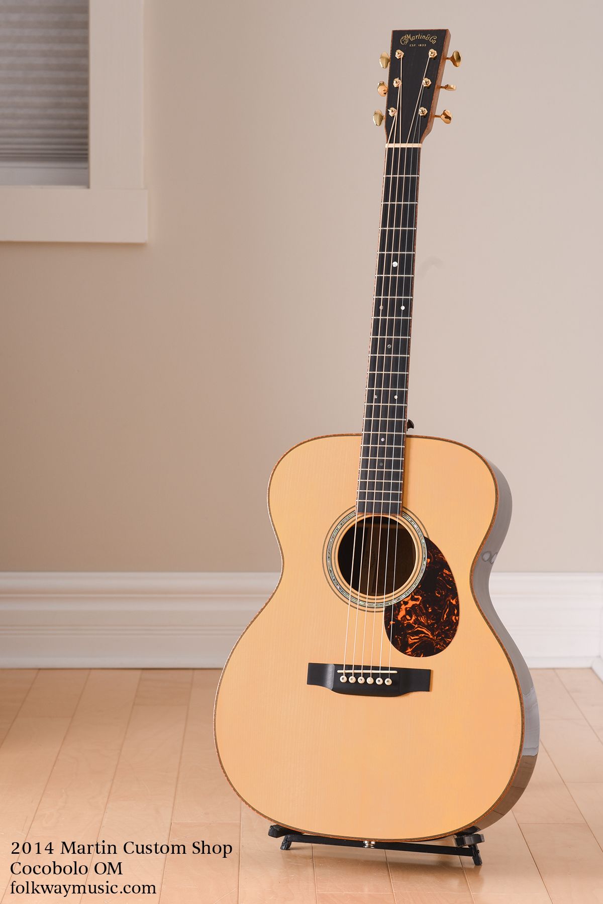 One of a run of seven instruments designed and built by Martin Custom Shop luthier Dale Eckhart, this OM is gorgeously appointed with flamed mahogany, cocobolo, and pearl. Based on Martin’s popular 14-fret OM model, this guitar features a forward-braced Adirondack spruce top and a three-piece back with a flamed mahogany center wedge. The sides and back are richly hued cocobolo. The top’s bracing features a Golden Era Sitka 5/16” X, small 1930s sized bridgeplate of cocobolo, and ¼” fingers and tone bars of Adirondack spruce. The back’s bracing is all ¼” Adirondack. The back and sides were spec’d thin for added resonance, and the entire guitar was assembled with hot hide glue.